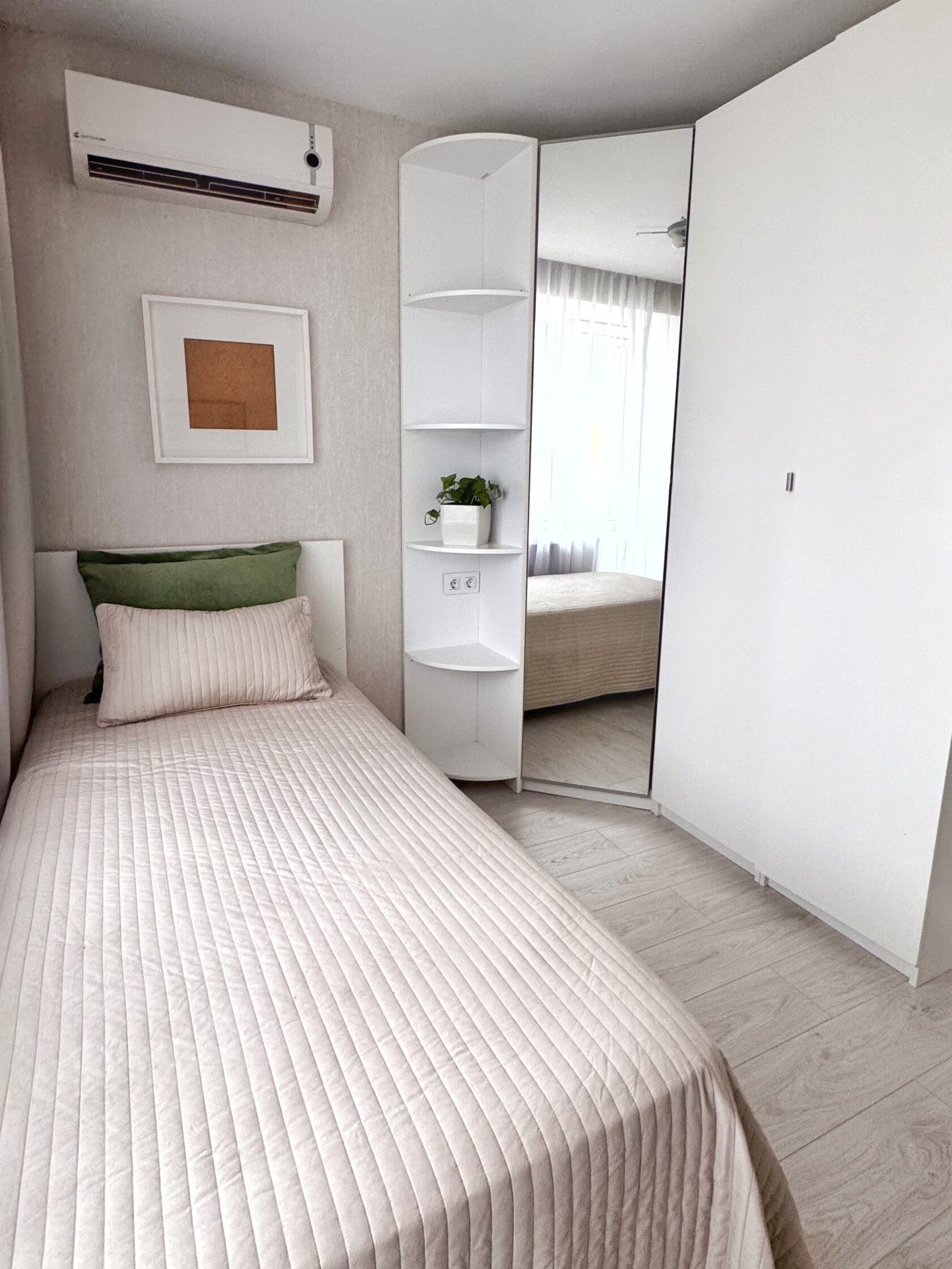 Эта просторная квартира идеально подходит для комфортного пребывания во время вашего визита в город. В ней есть две уютные спальни, оборудованные всем необходимым для отдыха после насыщенного дня осмотра достопримечательностей. Просторная гостиная с удобным диваном и обеденной зоной создаст атмосферу уюта и комфорта для отдыха вечером.